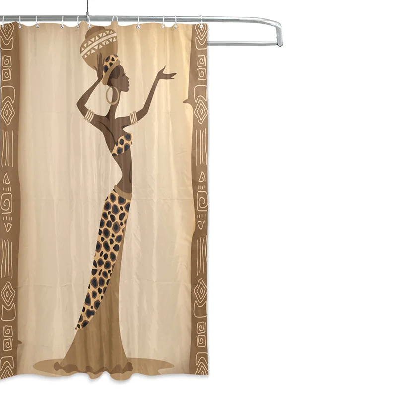 Eco-friendly African Women Shower Curtains Waterproof Polyester Fabric Bath Curtain for Bathroom with 12 Hooks Home Decor