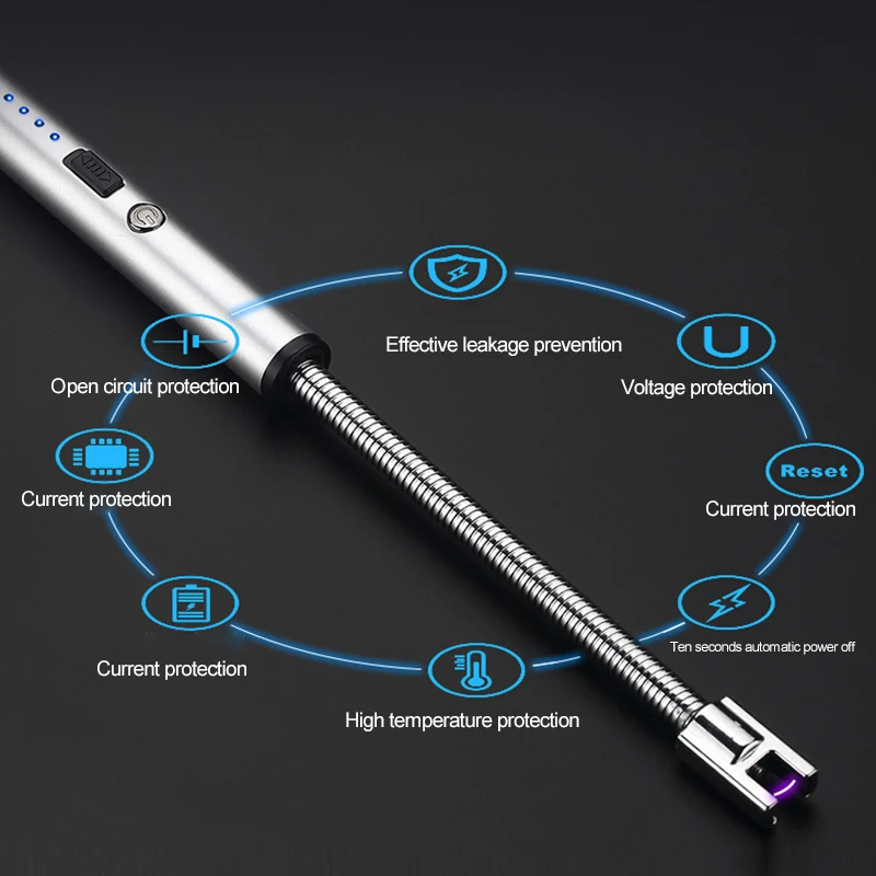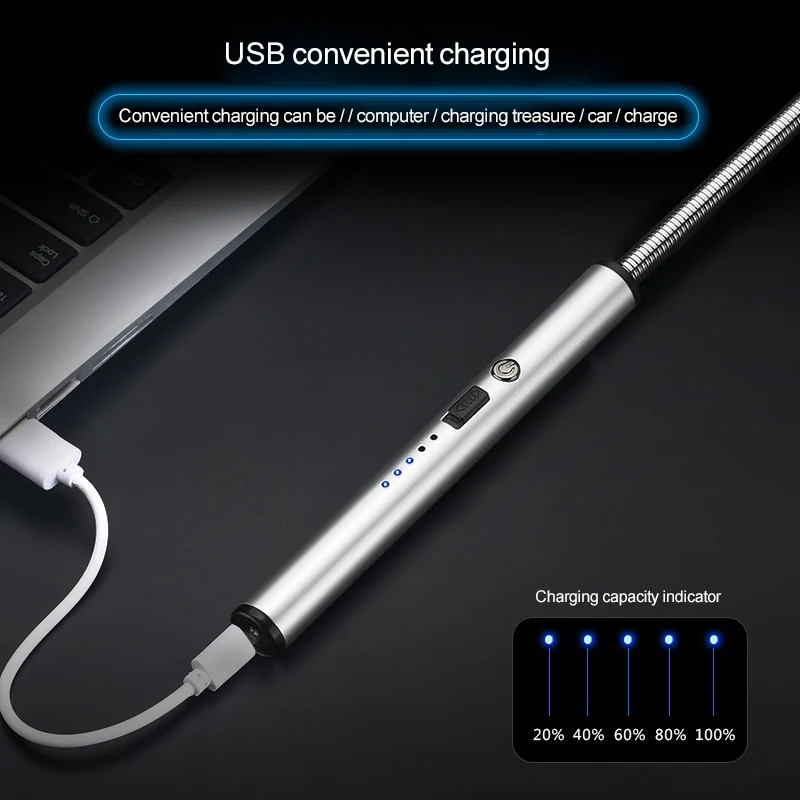 Long Electric Rechargeable USB Kitchen Lighter Windproof Electronic Cigarette Lighters Plasma Pulsed Arc BBQ Flameless Lighter #