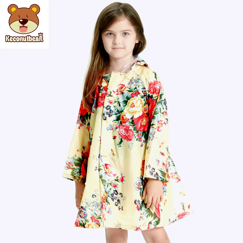 Keconutbear S-3XL Big Size Flower Raincoat Kids Waterproof Poncho Girls Rain Coat 2018 Fashion Student Tour Rainwear
